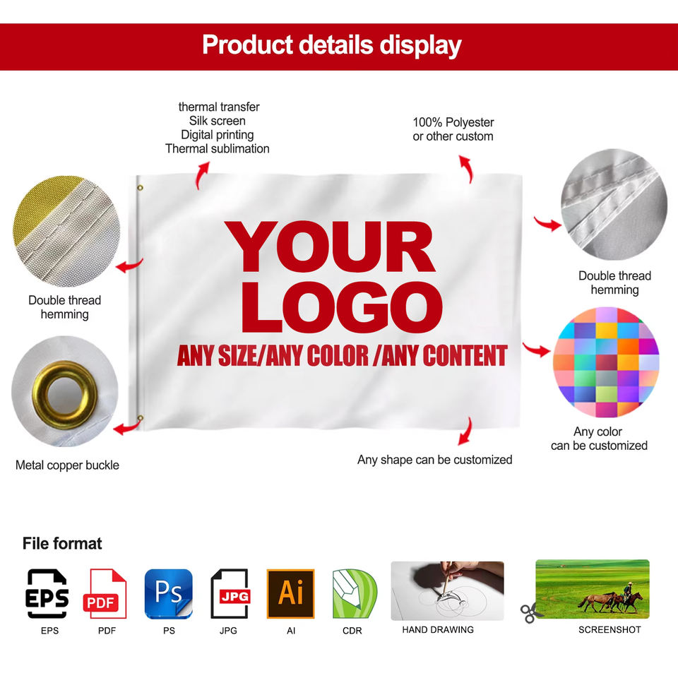 Keywords:Outdoor national flag/Team flag/Advertising flag/Event flag