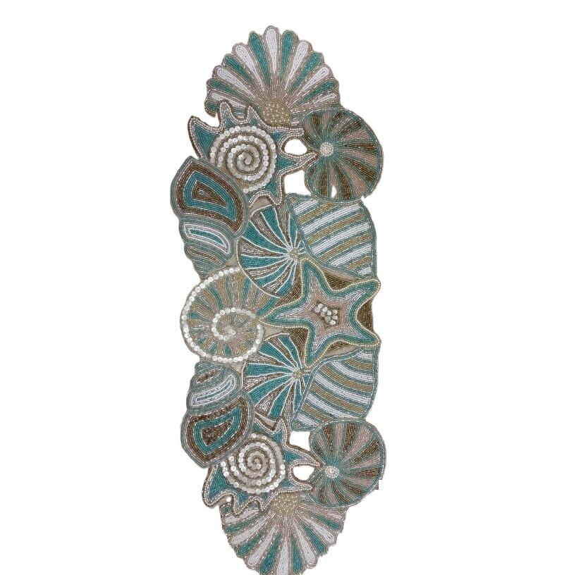 Camino de mesa bordado con cuentas y logotipo personalizado, fabricante de camino de mesa decorativo con cuentas de semillas bordadas a mano