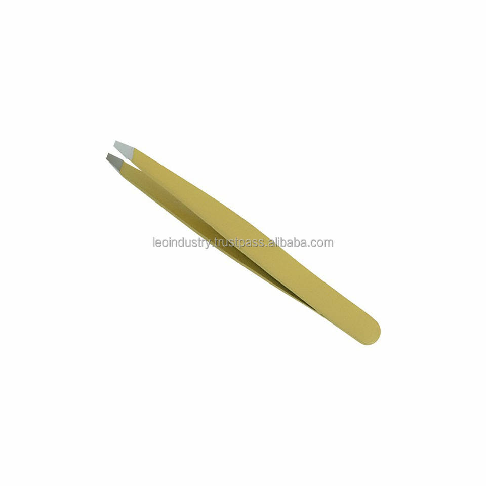 Extensiones de pestañas de acero inoxidable con logotipo personalizado, pinzas para cejas, estuche de herramientas OEM dorado, Punta puntiaguda, juegos de estuches de etiqueta privada