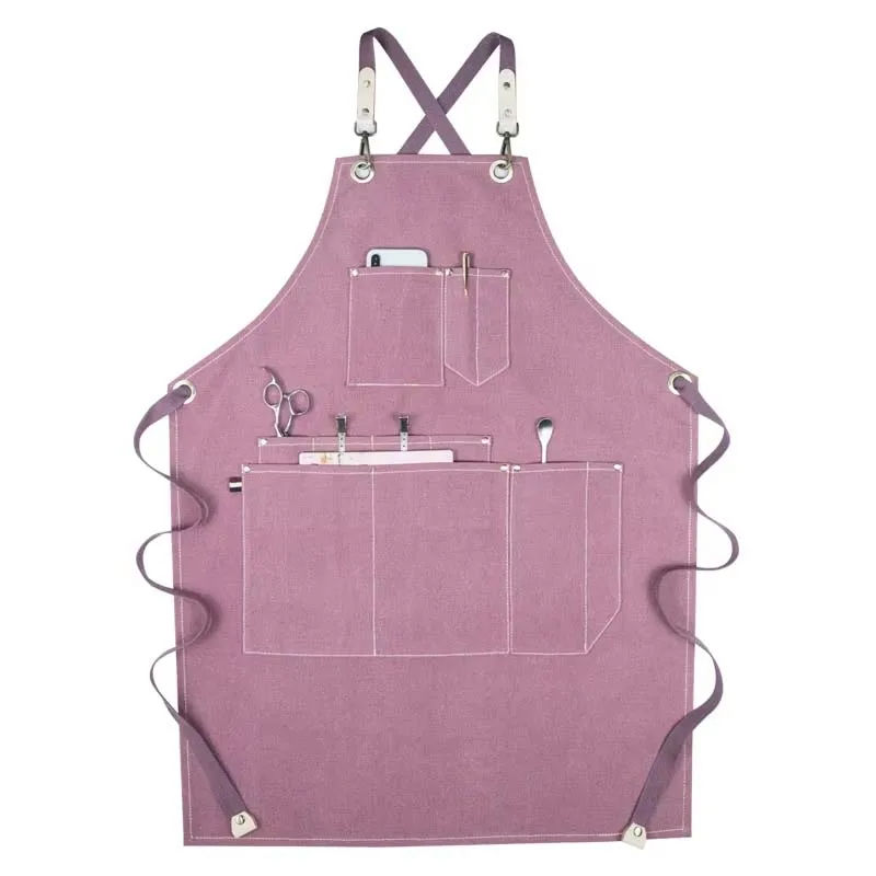 Delantal de tela vaquera de algodón con Babero con logotipo personalizado para adultos, mujeres, camarero, camarera, cocina, delantal resistente al agua, lavable para imprimir