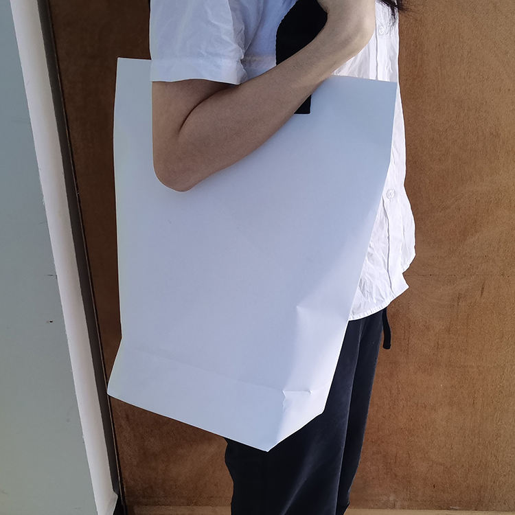 Bolsa de transporte de embalaje de mano de gran tamaño con logotipo personalizado, bolsa de compras de papel de cartón blanco reciclable con impresión CMYK con asa