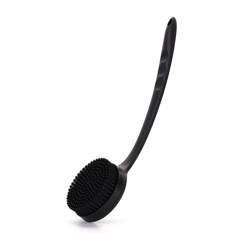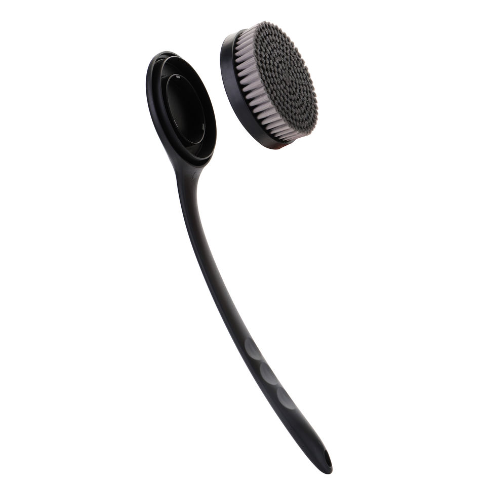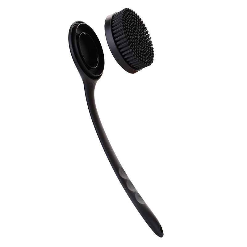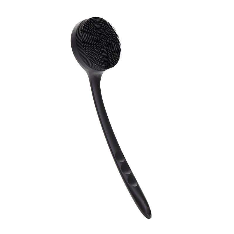 Cepillo de Ducha 4 en 1 con Mango Largo Negro y Logotipo Personalizado para Hombres, con 4 Cabezales Intercambiables de Silicona y Nylon