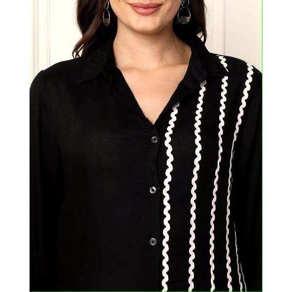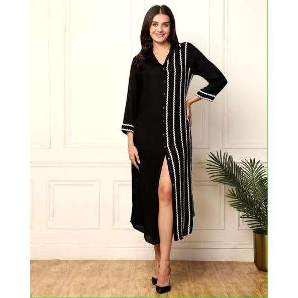 Logotipo personalizado negro rayón A-Line Midi vestido bordado cremallera decoración imperio cintura sostenible Oficina señora para el día de primavera XS