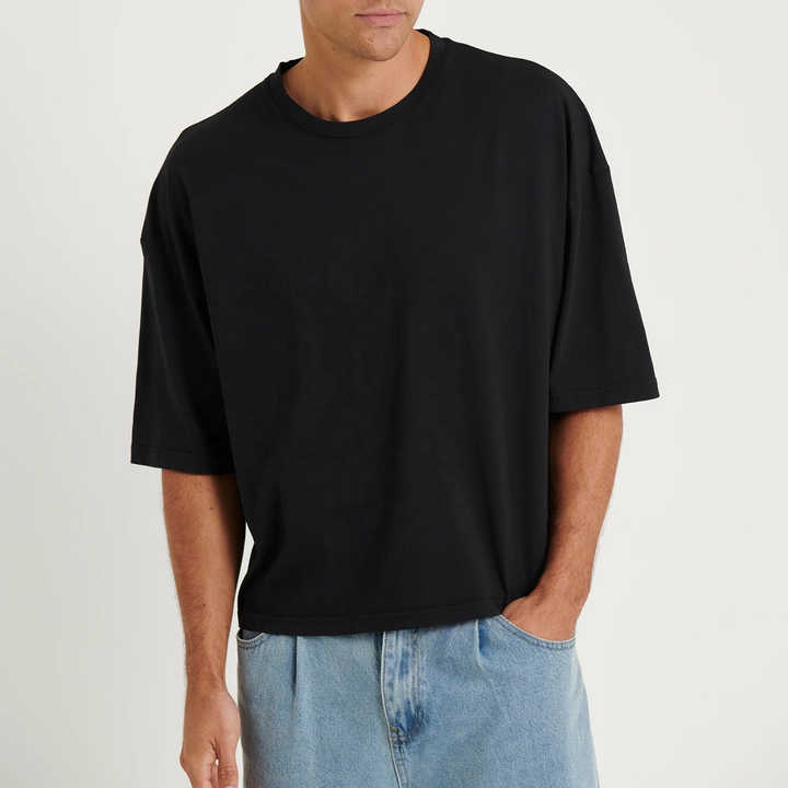 Logotipo personalizado Diseño en blanco 100% Algodón Peso pesado Oversized Boxy Fit Camiseta recortada para hombres