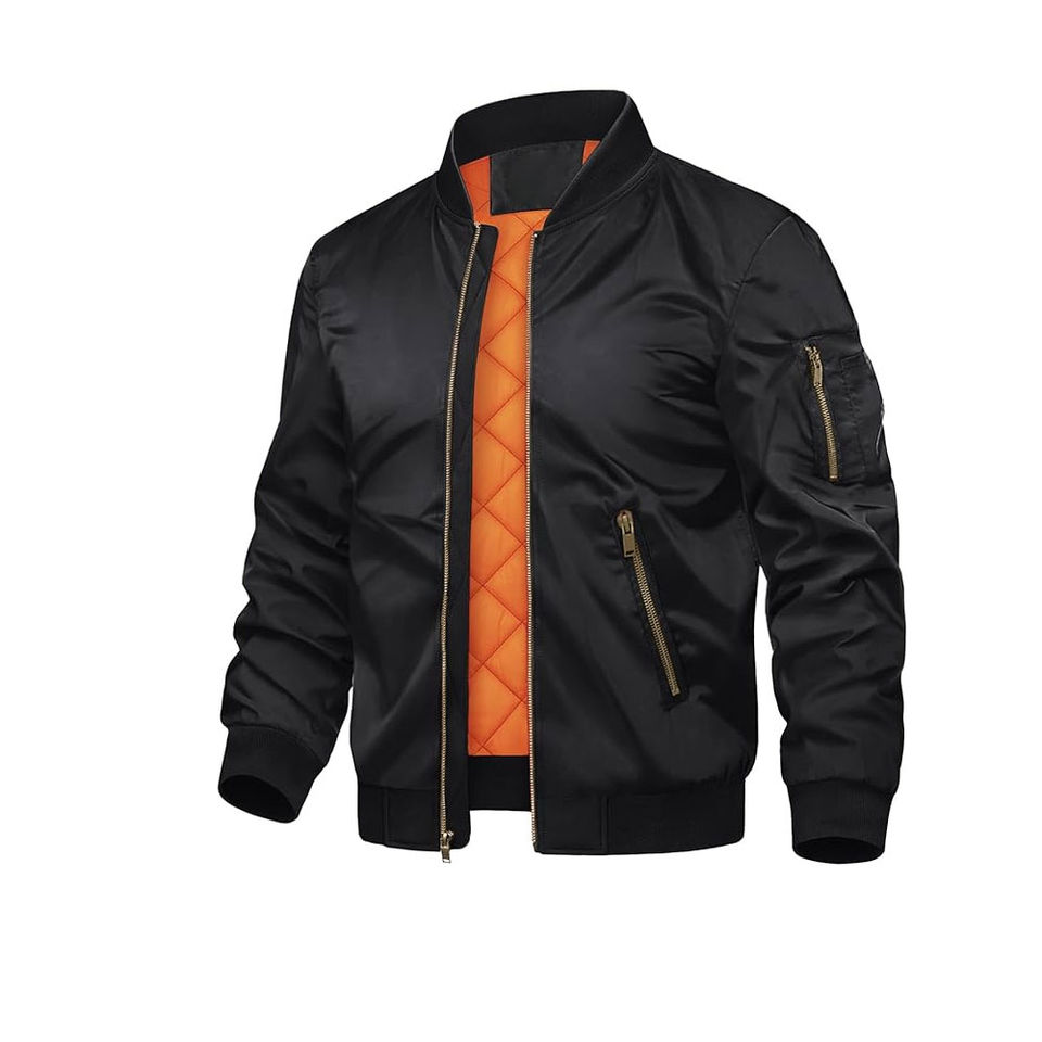 Chaqueta Bomber con Cuello Alto y Logotipo Personalizado para Hombre, Talla Grande, Impermeable, Transpirable, Logotipo Frontal, Precio Económico