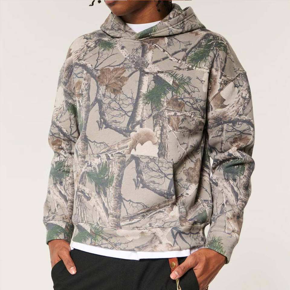 Sudadera con Capucha de Camuflaje de Corte Holgado con Logotipo Personalizado para Hombre, Estilo Urbano, de Algodón, Oversize, Casual