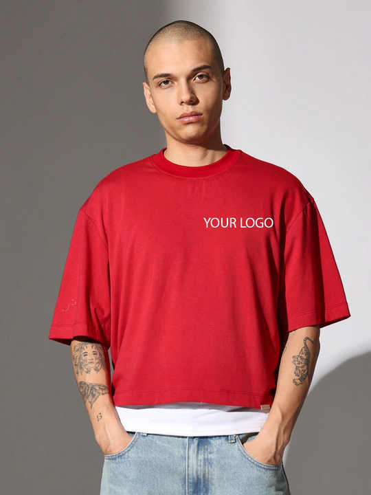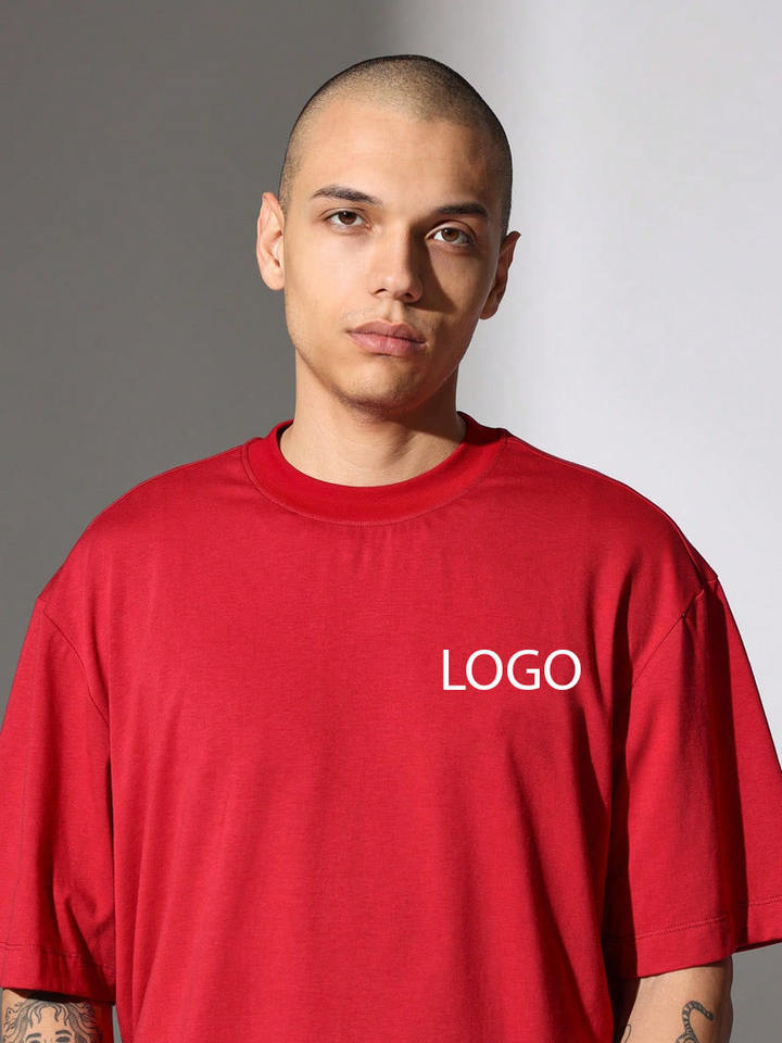 Camisetas de Hombre con Corte Cuadrado y Logotipo Personalizado, 100% Algodón, Hombros Caídos, Cuello Acanalado, Estilo Urbano, Manga Corta, Texto y Gráficos Personalizados