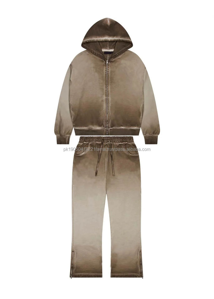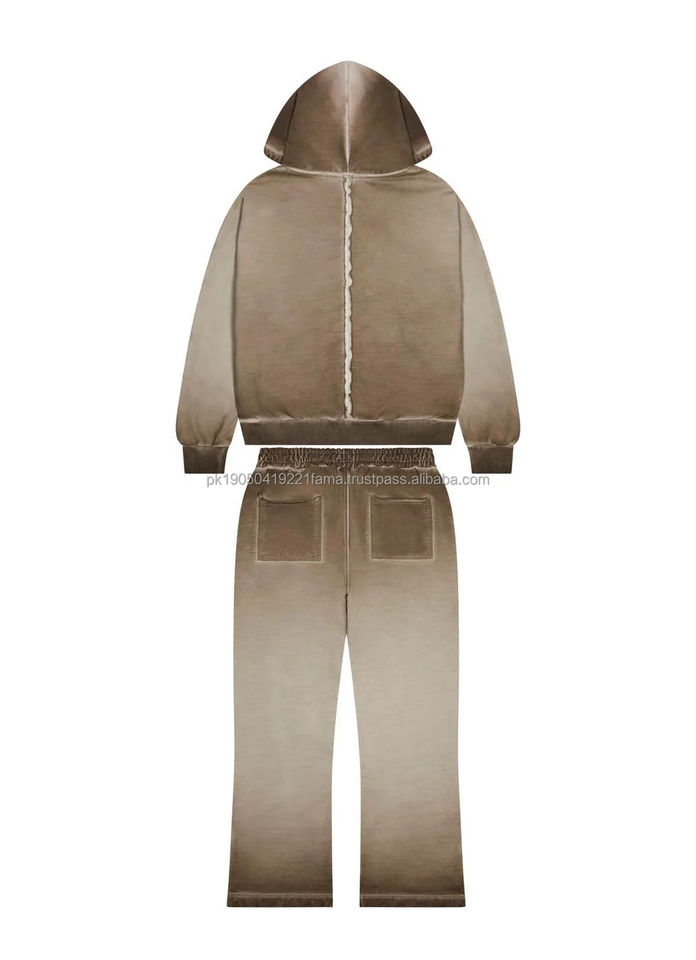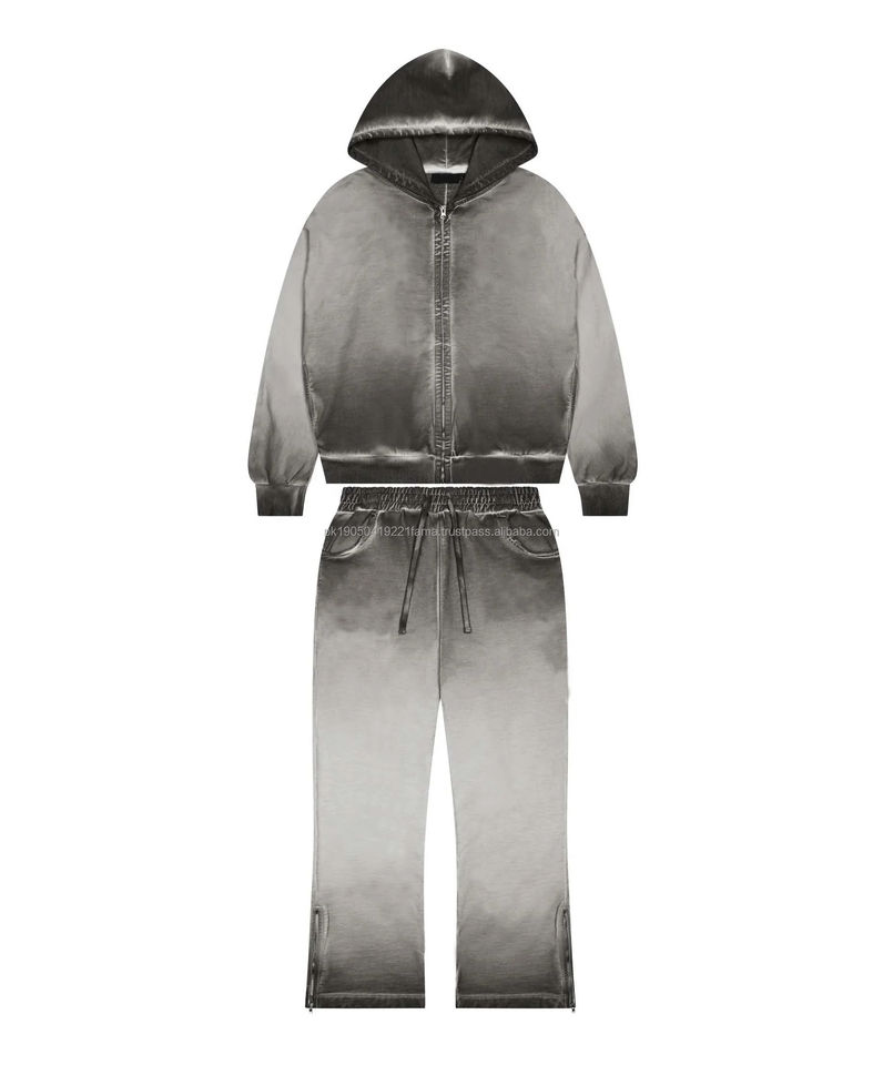 Conjunto Deportivo Personalizado con Logotipo, Transpirable, 100% Algodón, Invernal, Estilo Urbano, Lavado Ácido, Pantalones Acampanados y Sudadera con Capucha, Diseño Único para Hombre