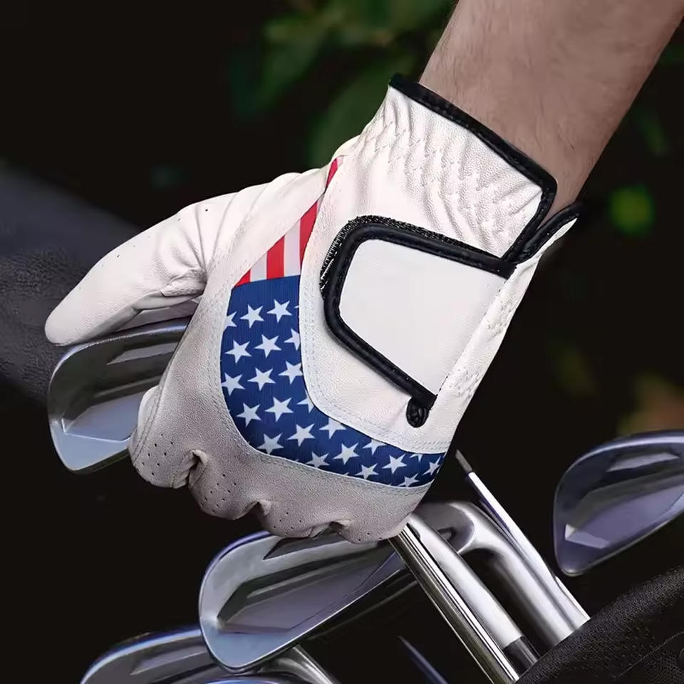 Guante de Golf Personalizado con Logotipo, Transpirable, Antideslizante, Ligero, de Dedo Completo, para Zurdos, Diseño de Bandera Americana, Cuero Cabretta, Deportivo