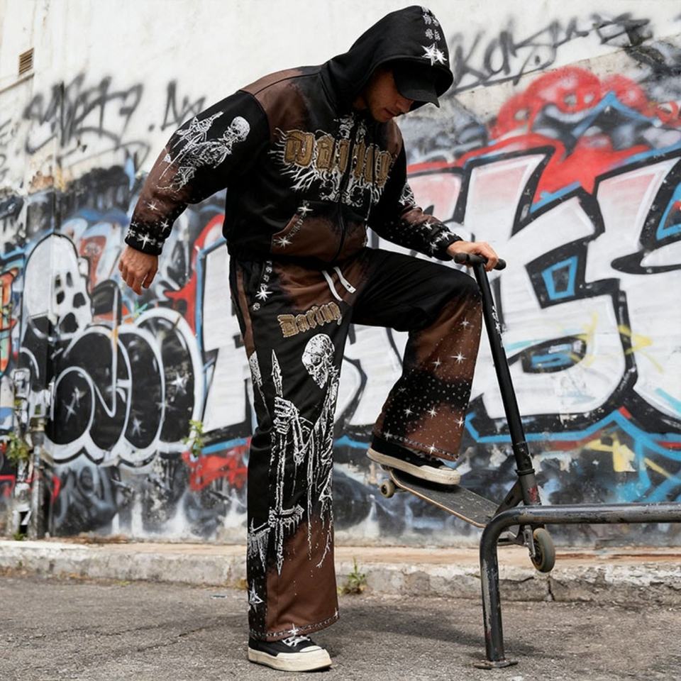 Conjunto Deportivo de 2 Piezas con Logotipo Personalizado, Transpirable, Talla Grande, Chaqueta con Cremallera y Pantalones Deportivos de Nailon, Estilo Hip-Hop Urbano, Cortavientos