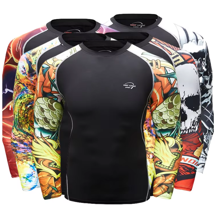 Camiseta de Compresión para Jiu Jitsu BJJ con Logotipo Personalizado, Transpirable, Unisex, para MMA, con Estampado por Transferencia de Calor, Mangas Largas