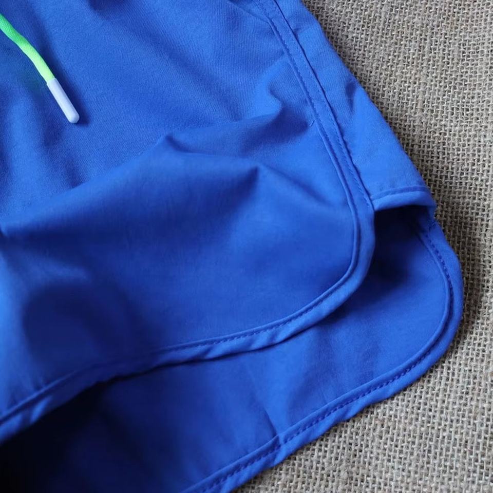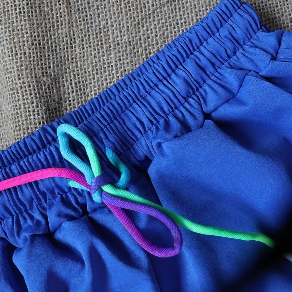 Pantalones Cortos Deportivos Azul Brillante con Logotipo Personalizado, Tela de Secado Rápido, Cintura con Cordón Ajustable, Dobladillo Dividido, para Deportes y Running