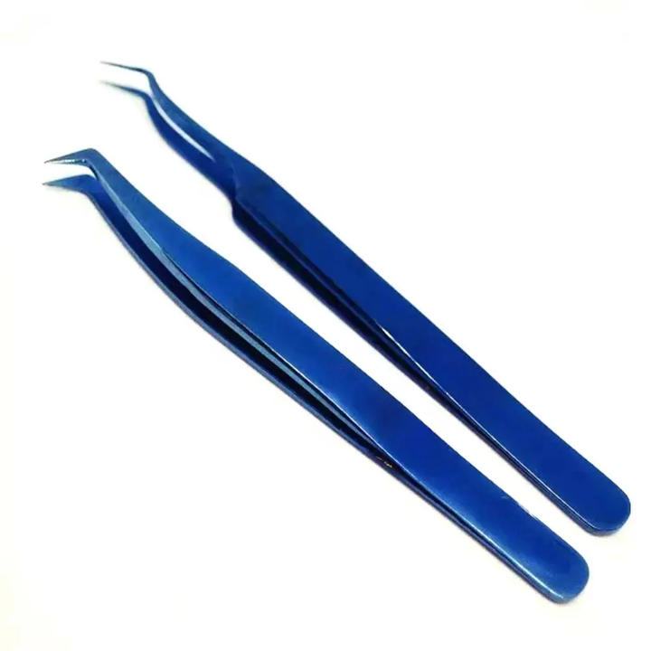 Juego de pinzas para extensiones de pestañas con etiqueta privada a granel con logotipo personalizado, caja de acero con acabado inoxidable dorado, herramienta accesoria para pestañas