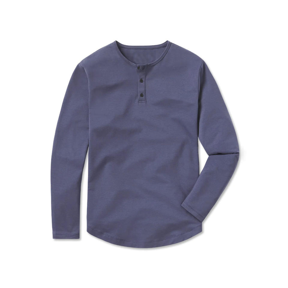 Camiseta de manga larga Henley Curve Hem Moonshadow, Logo personalizado, Buttery, suave, 62% poliéster, 33% algodón, 5% Spandex