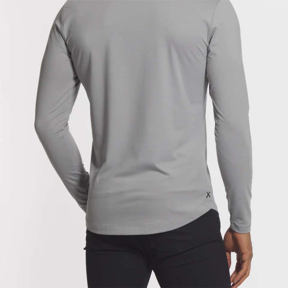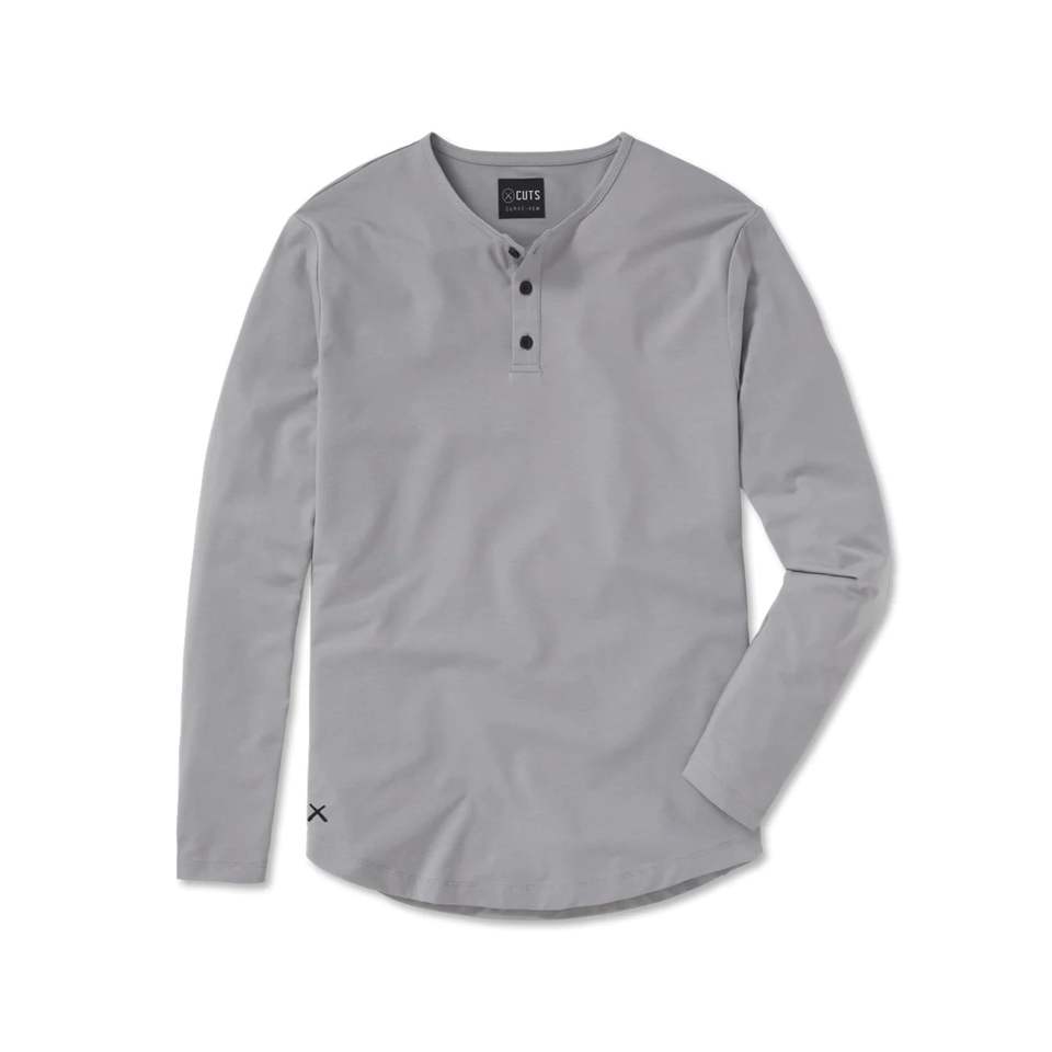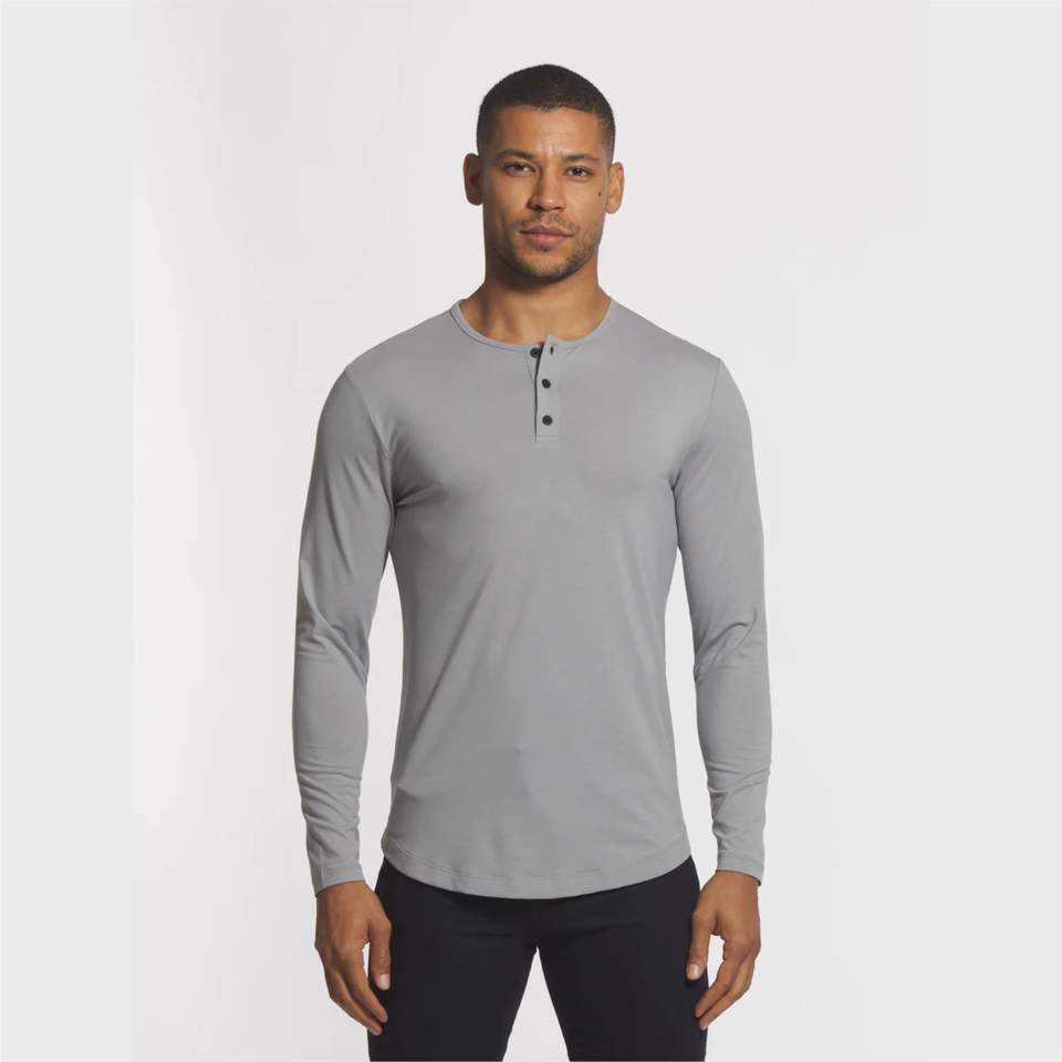 Camiseta de manga larga con Logo personalizado de Buttery, camisa de granito con dobladillo curvado Henley, 62% poliéster, 33% algodón y 5% LICRA