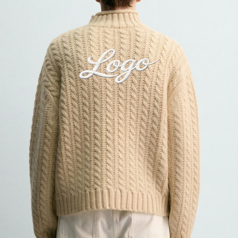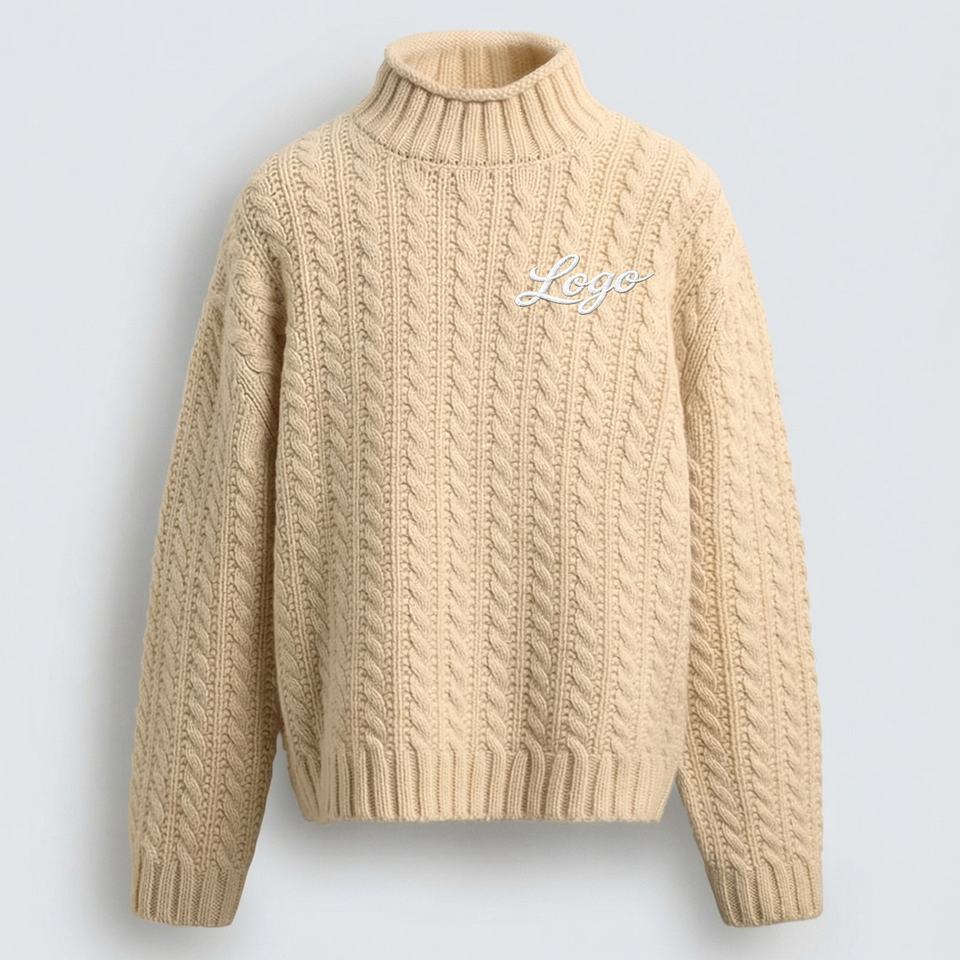 Suéter de lana con logo personalizado, cuello alto, cálido, grueso, tejido, para hombre, para invierno.