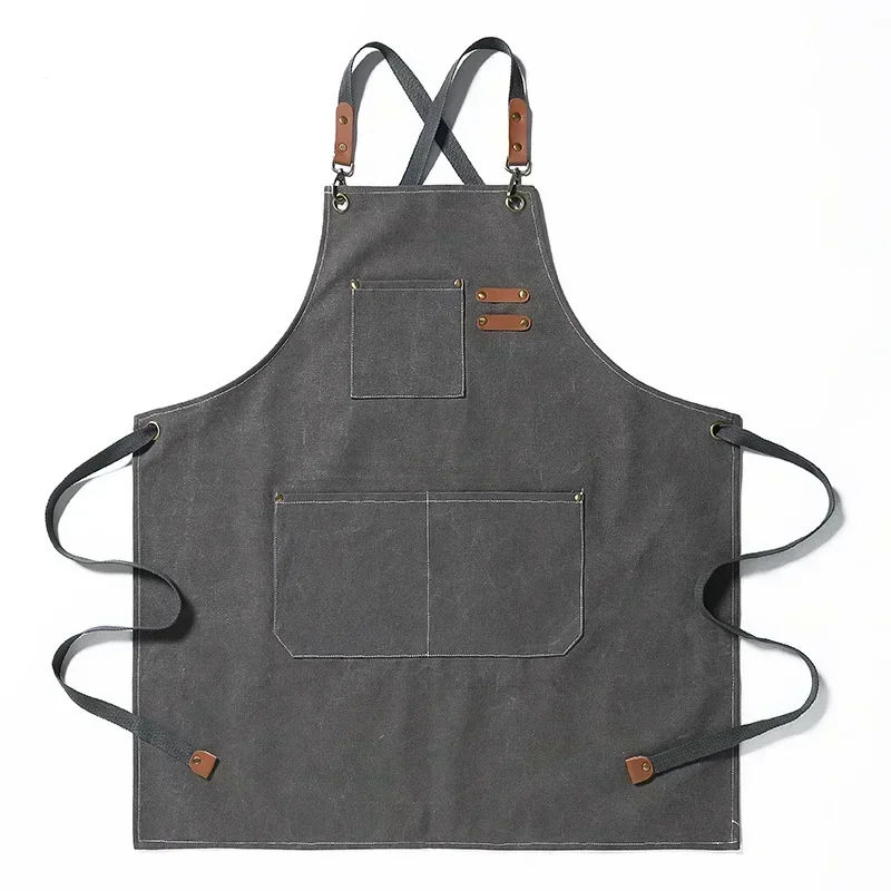 Logotipo personalizado Café Bar Uniforme Ajustable Impermeable Resistente al aceite Lona Chef Delantal con bolsillos