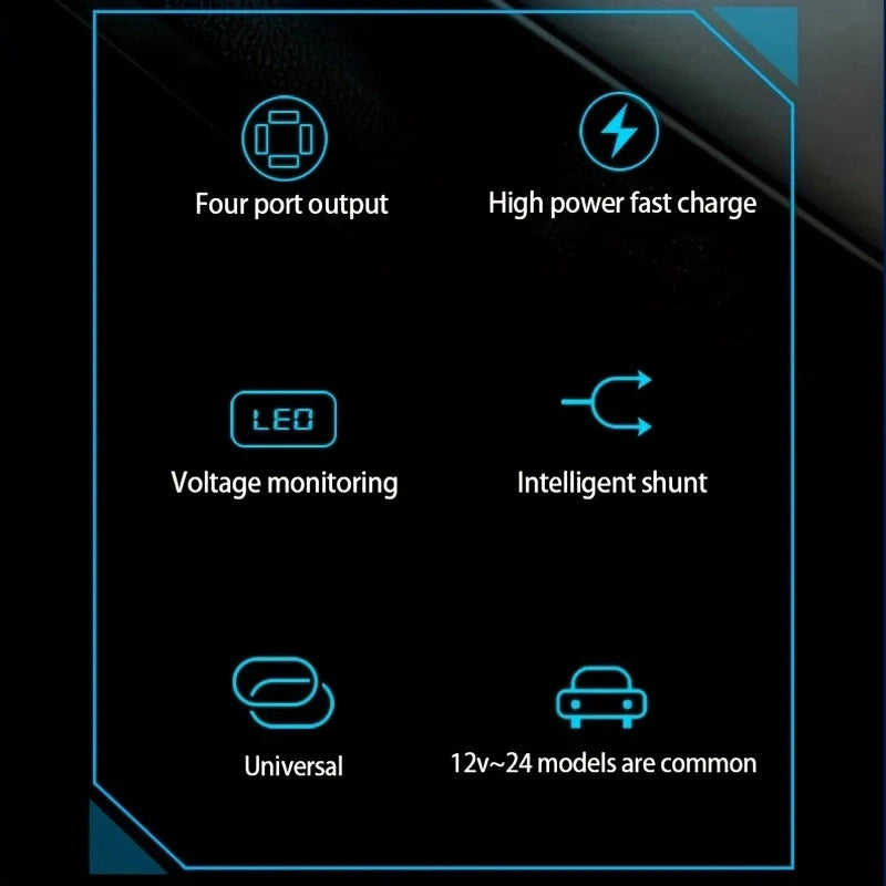 Cargador de Coche USB con Pantalla Digital de Detección de Voltaje de Batería, 4 Puertos USB, Carga Súper Rápida, PD QC3.0, con Logotipo Personalizado