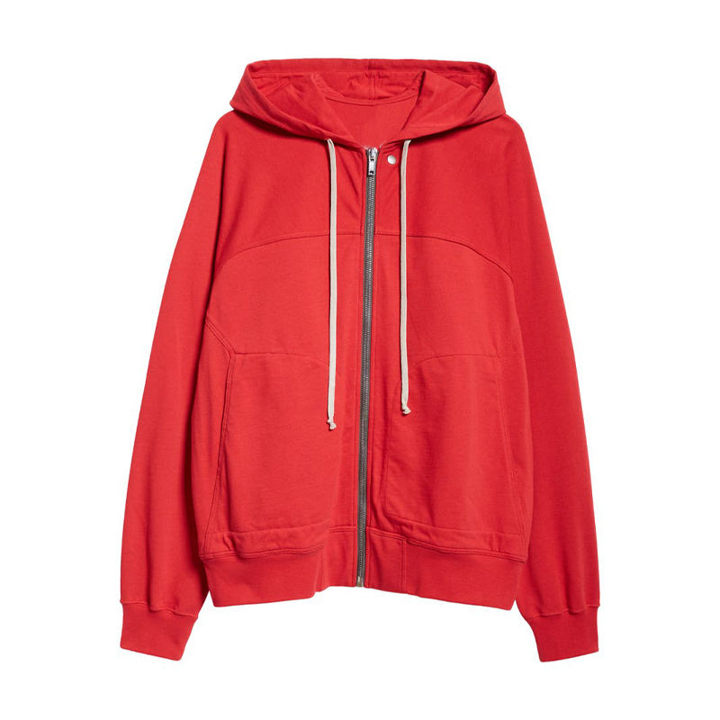 Sudadera con capucha y cremallera de forro polar de algodón rojo 100% informal de gran tamaño con logotipo personalizado Sudadera con capucha con cordón deportivo y bolsillos laterales 2026