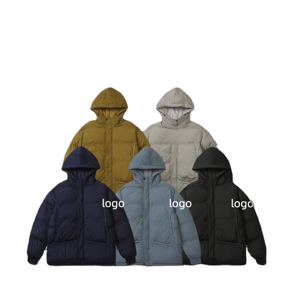 Chaqueta acolchada informal con logotipo personalizado para hombre, prendas de vestir gruesas y cálidas para exteriores, cuello levantado, cremallera para otoño, servicio OEM disponible