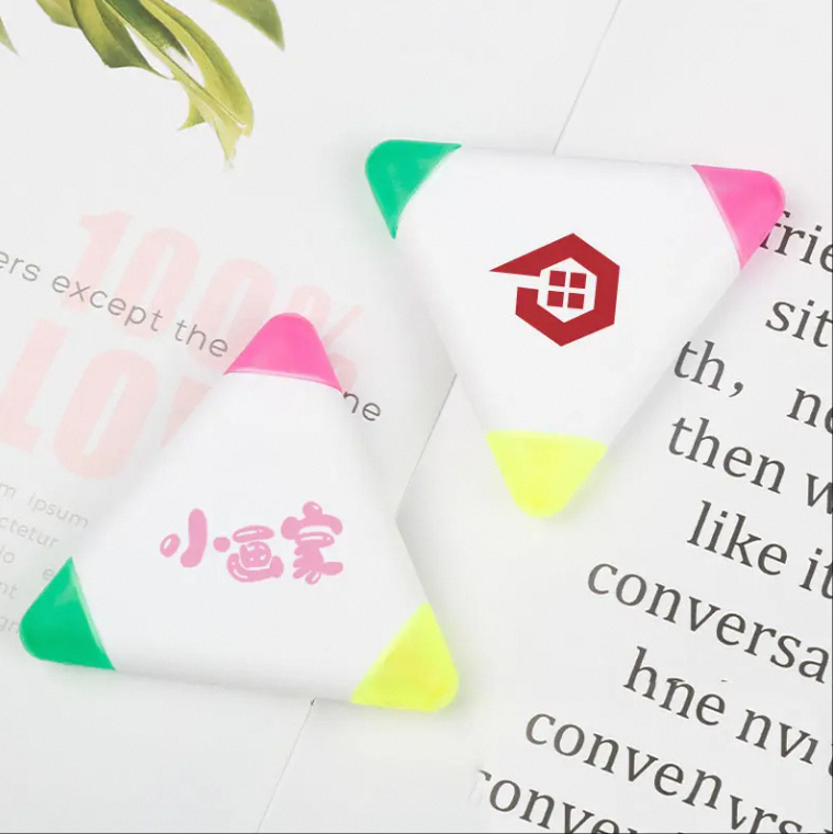 Bolígrafo resaltador de moda colorido barato con logotipo personalizado 3 en 1 resaltador de regalo en forma de triángulo