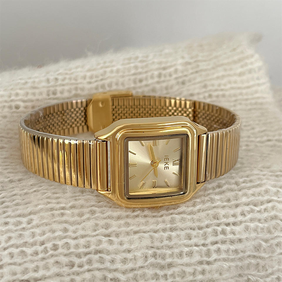 Reloj de Metal Cuadrado Clásico con Logotipo Personalizado, Reloj de Cuarzo Dorado Pequeño Vintage para Mujer