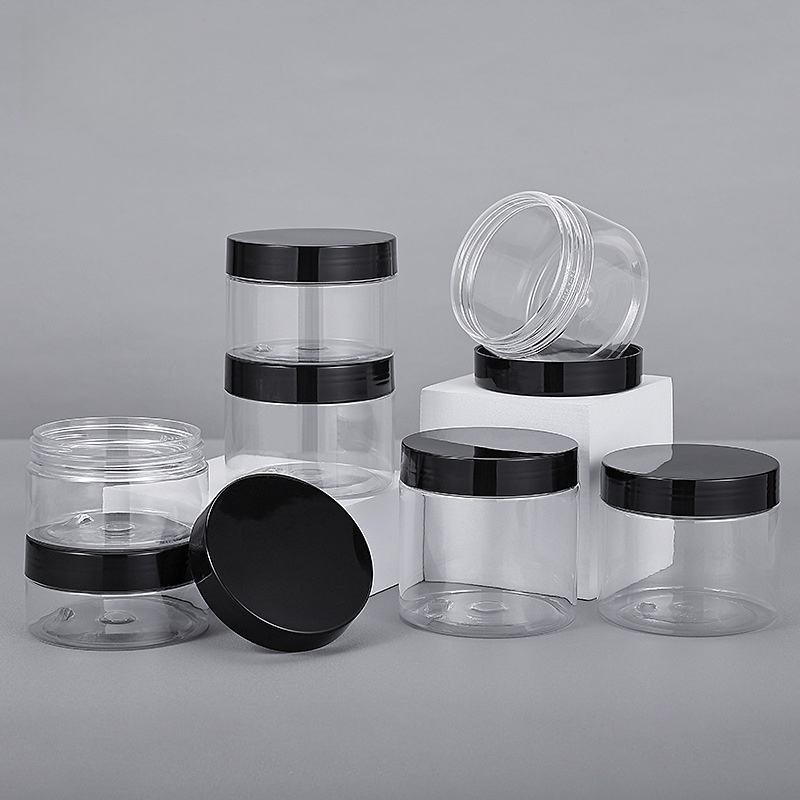Frascos de almacenamiento de PET de plástico transparente con logotipo personalizado de 2 oz a 16 oz de grado alimenticio y cosméticos para almacenamiento de mascotas con tapas de rosca