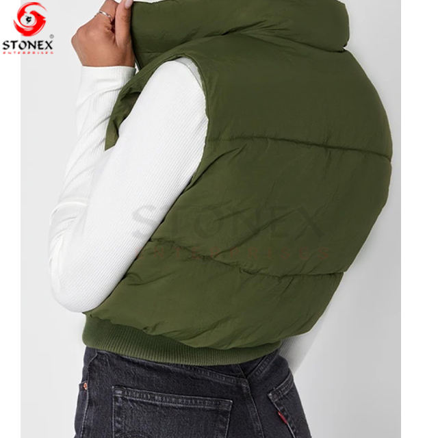 Ropa con logotipo personalizado, chaqueta con cremallera, ropa reversible, chaleco abullonado para mujer, chaleco acolchado recortado, ropa de calle, chaqueta acolchada sin mangas
