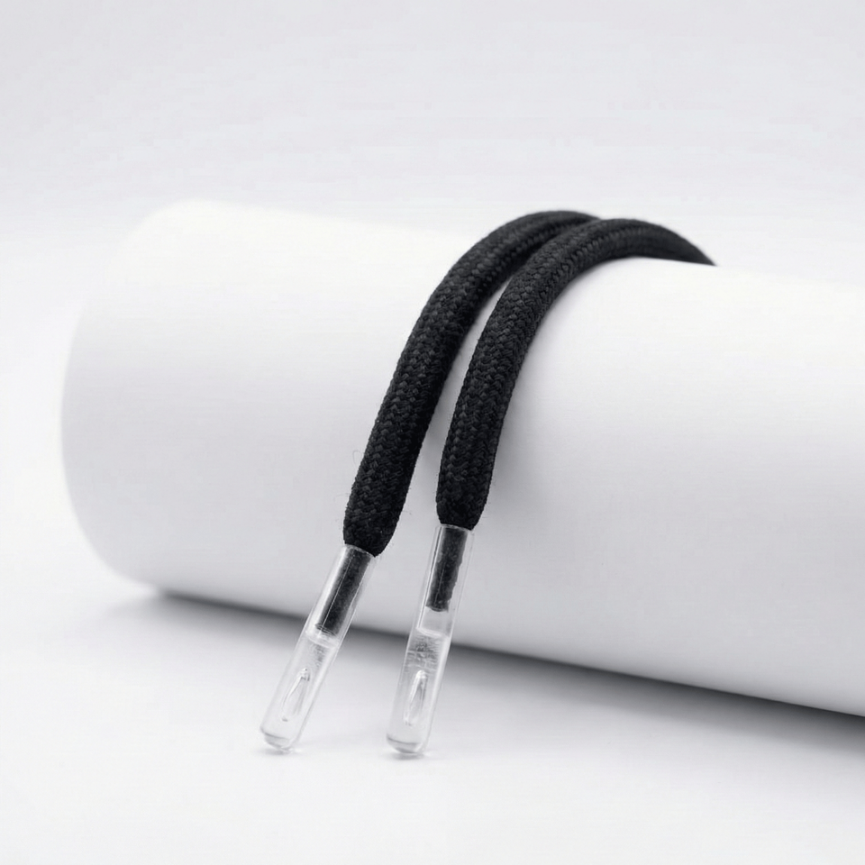 Cordones Elásticos Personalizados con Logotipo, Recubiertos, Trenzados de 3 Hilos, 100% Poliéster, Ecológicos, Impermeables | Conjunto de Sudadera con Capucha y Pantalones