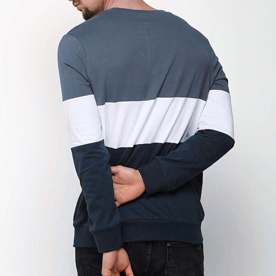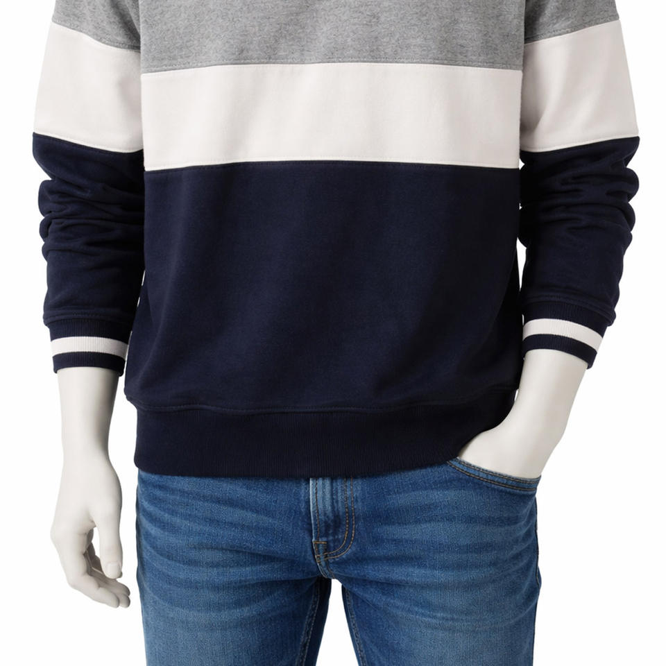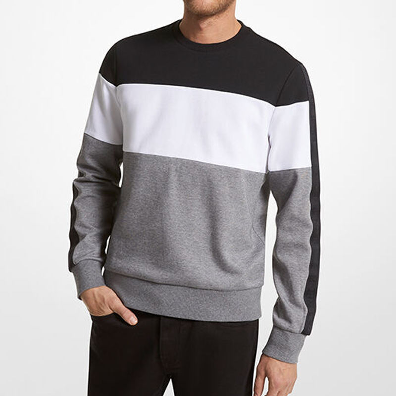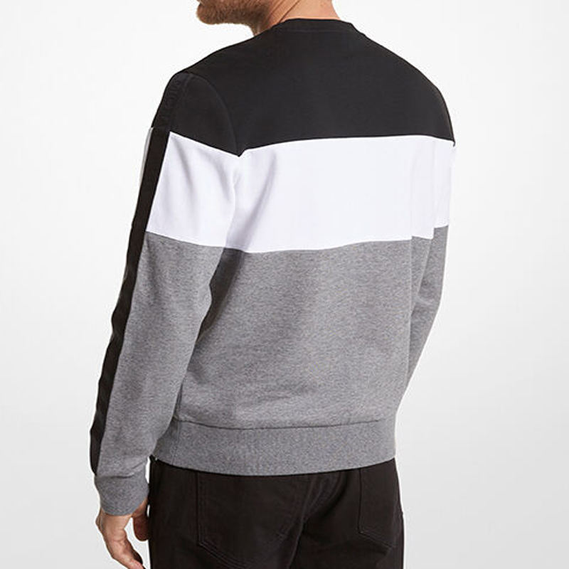 Sudadera con cuello redondo y bloques de color con logotipo personalizado, suéter de forro polar al por mayor, top de tres tonos en contraste para hombre