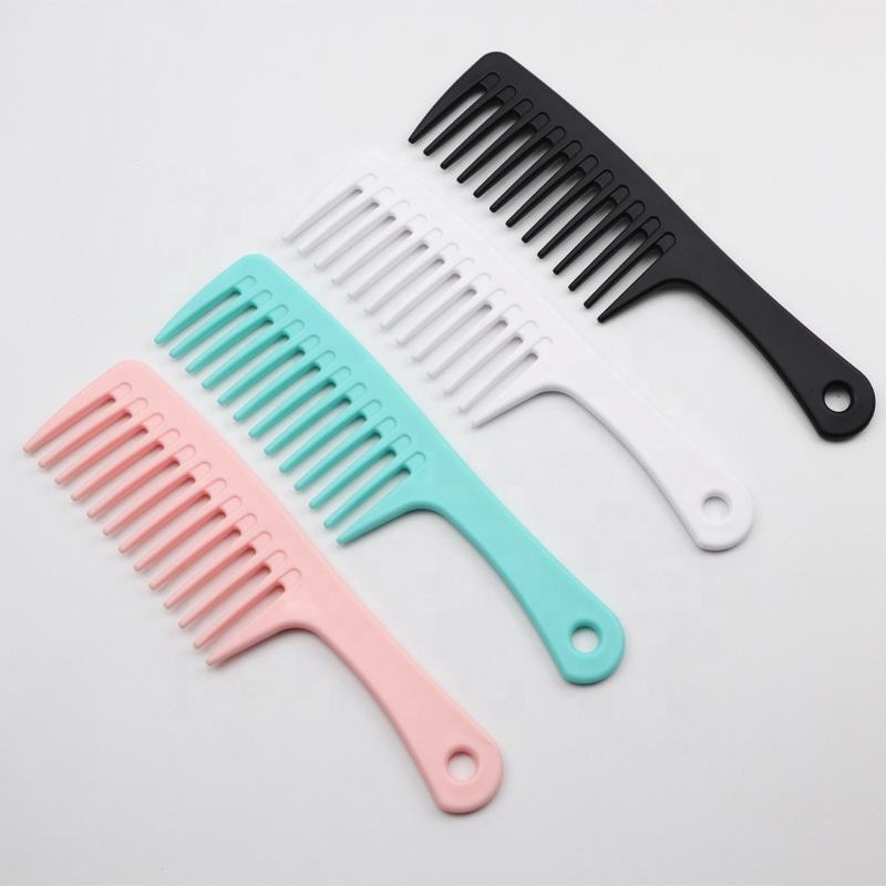 Peine de peluquería de colores con logotipo personalizado, peine de peluquería de masaje portátil para el hogar, peine plano de dientes gruesos de plástico