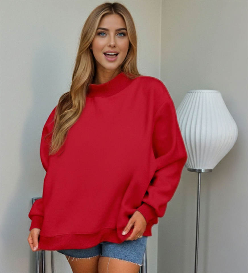 Suéter de Cuello Alto Personalizado con Logotipo, Cómodo, Grueso, 180 Gramos, 100% Algodón, Forro Polar, Apliques Bordados, para Mujer, Invierno y Otoño