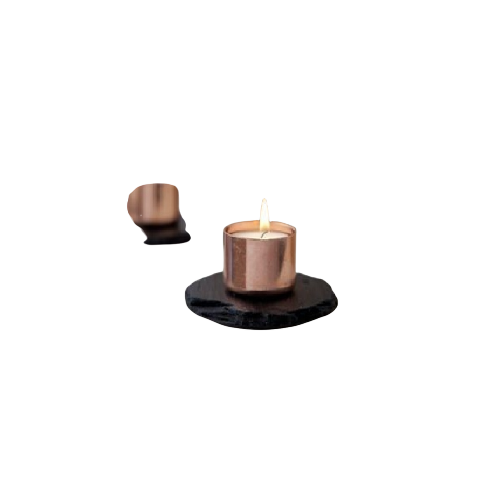 Contenedor de vela con forma de placa de cargador de lujo de cobre con logotipo personalizado diseño dorado Simple cuchara de boda atractiva para Pascua India