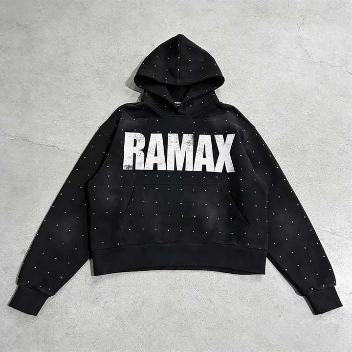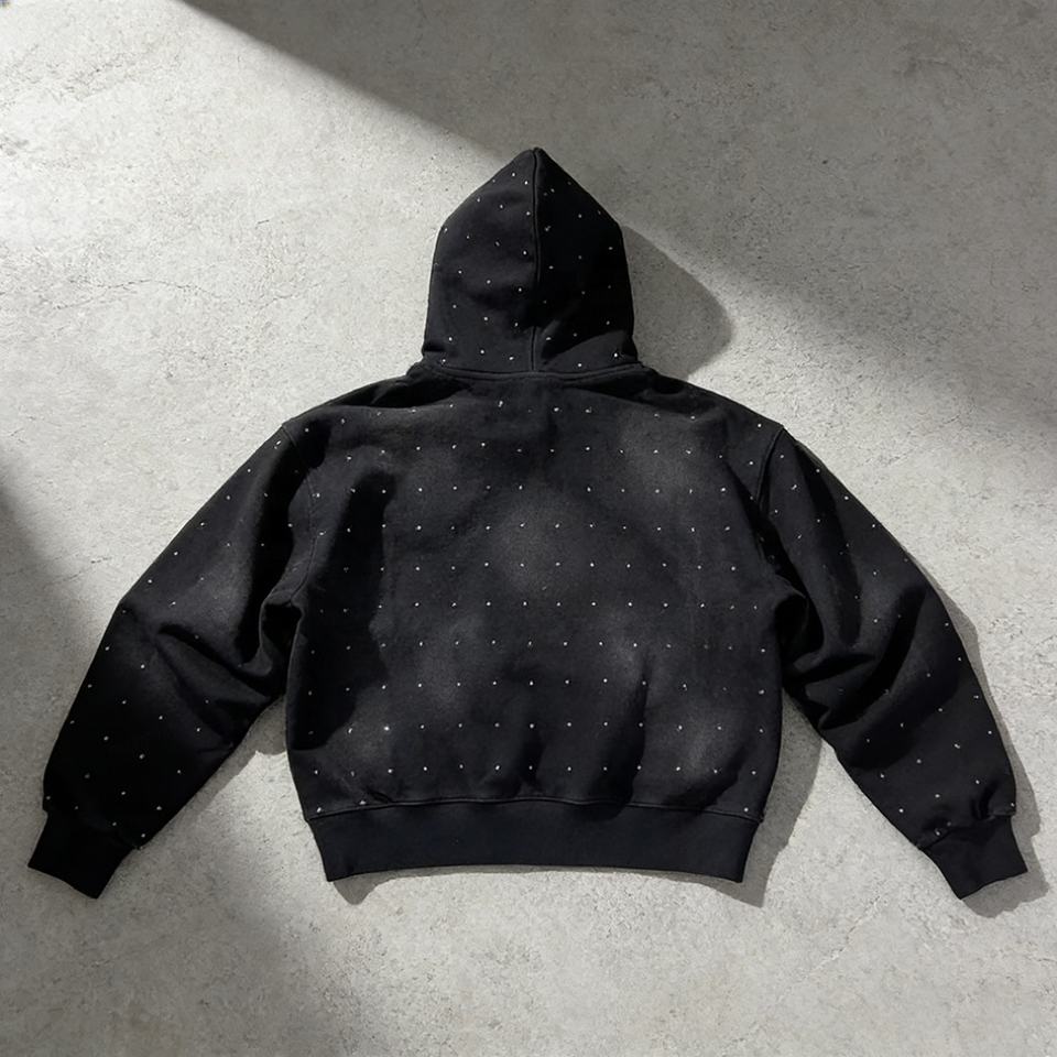 Sudadera con Capucha de Invierno para Hombre, Estilo Hip Hop, Personalizada con Logotipo, de Algodón/Poliéster, Felpa Francesa, Estampada, Talla Grande, Lavada, con Pedrería