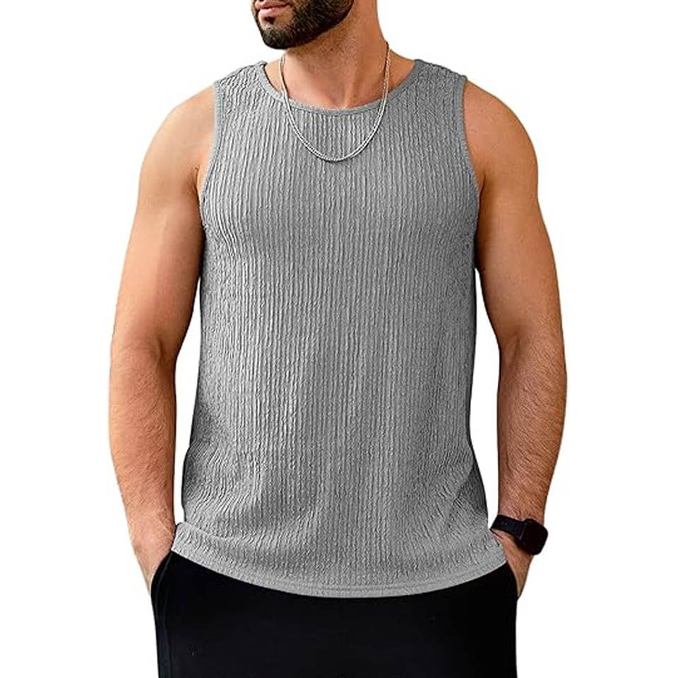 Camiseta sin mangas tipo waffle de algodón/poliéster con logo personalizado para hombre, de alta calidad, la más vendida a un precio razonable.