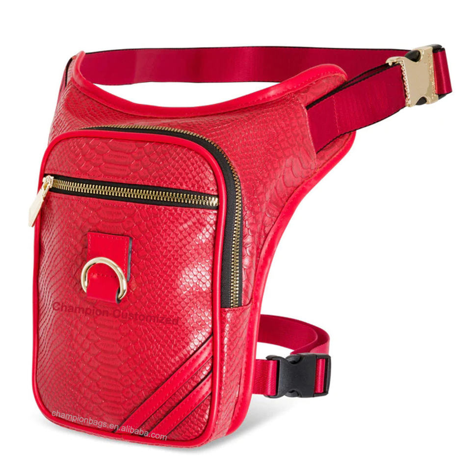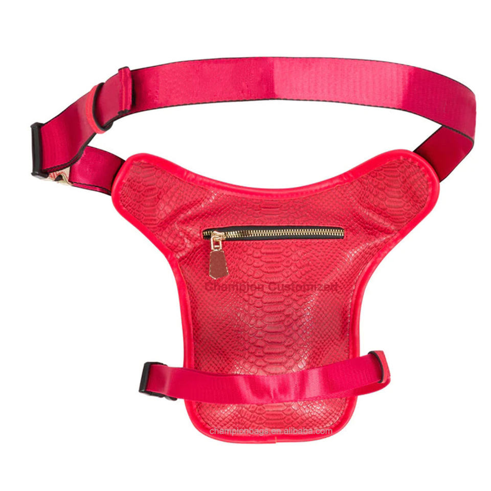Logotipo personalizado Croc cuero en relieve señoras neón Rosa Sling cinturón cintura pierna bolsa moda monedero riñonera para mujer