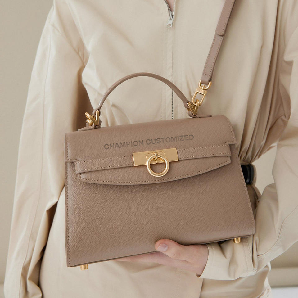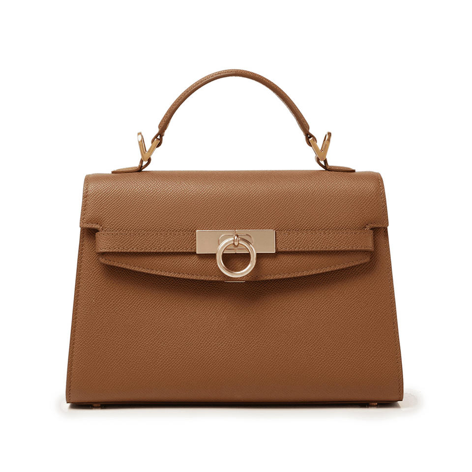 Bolso de mano de cuero crossgrain con asa superior y logotipo personalizado, bolso de oficina para mujer, bolso cruzado clásico para mujer