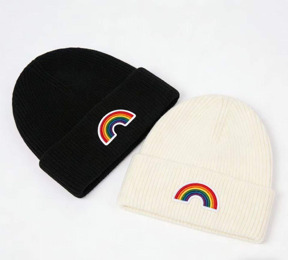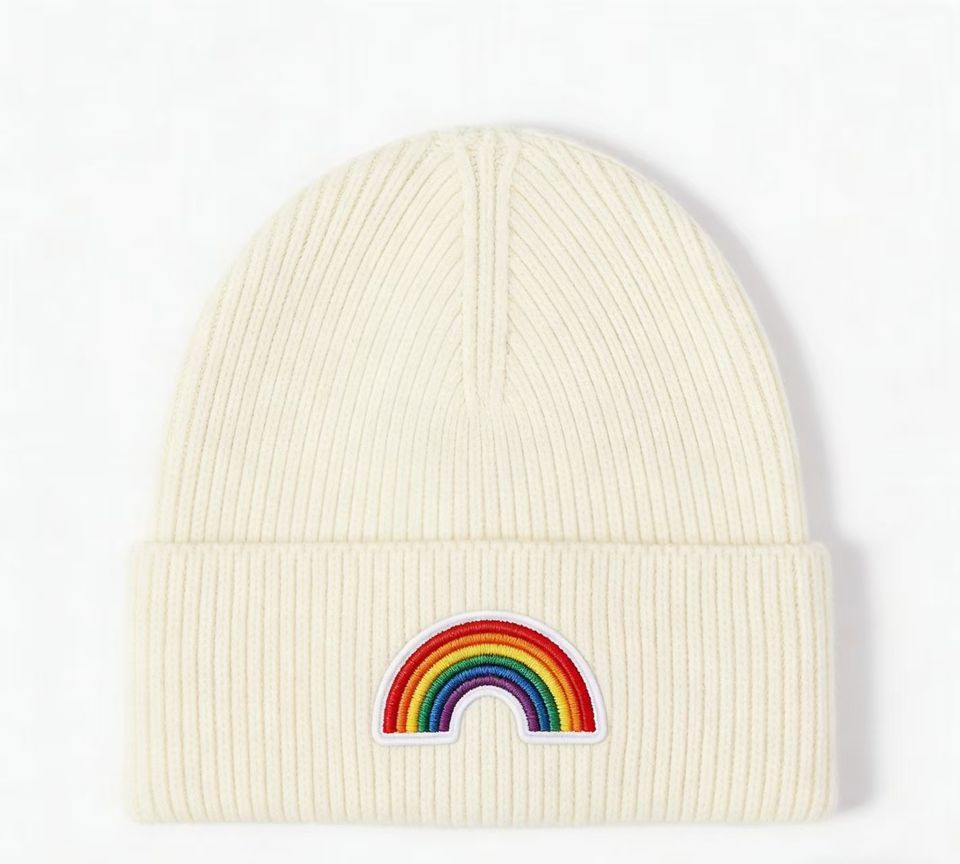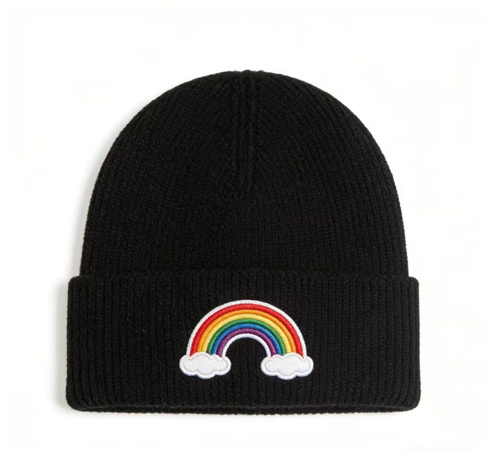 Gorro de Punto Personalizado con Logotipo, Bordado 2D, Diseño de Dibujos Animados, Arcoíris, Unisex