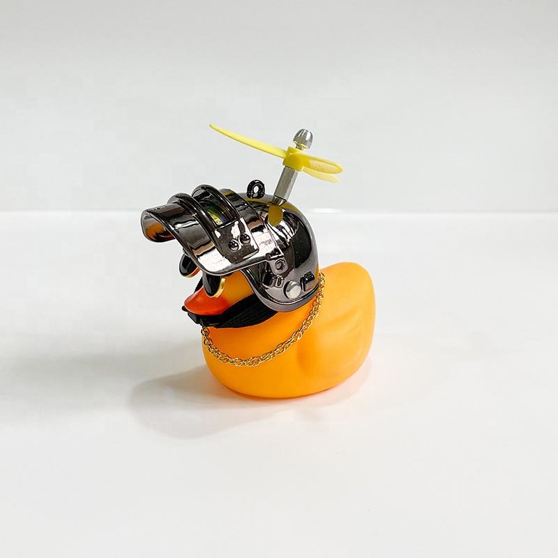 Adorno de Pato de Goma Amarillo Miniatura con Logotipo Personalizado, Adorno de Pato para Coche, Accesorios para Bicicleta con Hélice y Casco