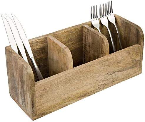 Soporte de cubiertos con logotipo personalizado, accesorio de madera de Acacia, Caddy, compartimiento múltiple, almacenamiento, Caddy