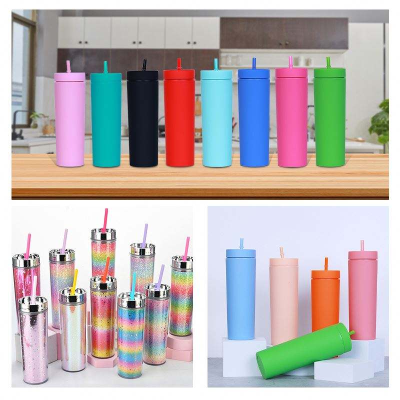 Vaso Delgado Reutilizable de Plástico Transparente de 16 oz con Logotipo Personalizado, Vaso de Plástico de Color Pastel Mate, Vaso Acrílico de 16 oz con Pajita y Tapa