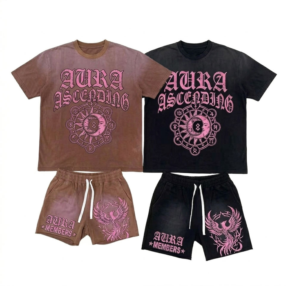 Conjunto de Camiseta de Verano de Dos Piezas con Logotipo Personalizado, Impresión DTF, Tejido Transpirable, Estilo Hip-Hop, Tallas Grandes, para Hombre