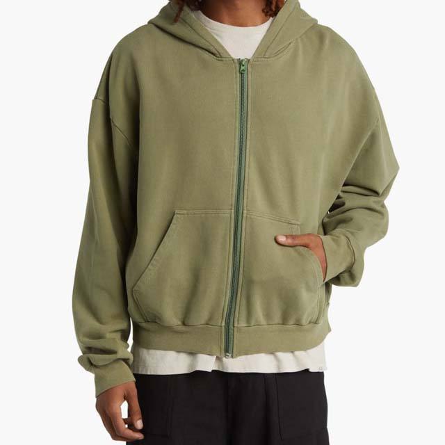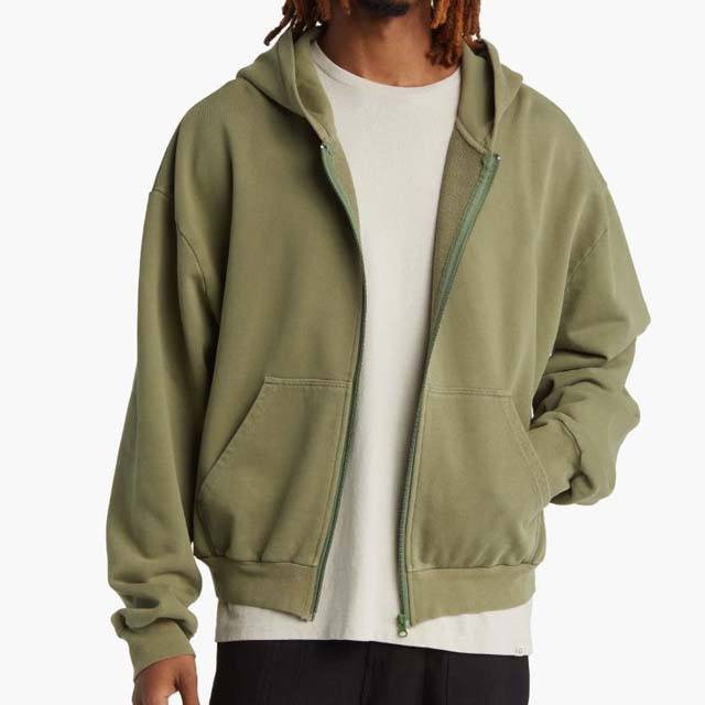 Sudaderas con capucha con cremallera y bolsillo de lana de rizo de algodón vintage ligeramente desteñidas cómodas y transpirables con logotipo/diseño personalizado para hombres
