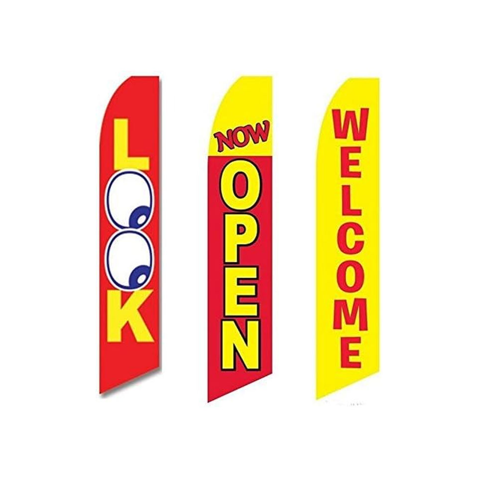 and banners advertising feather flags with base