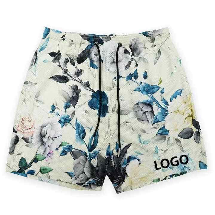 Pantalones Cortos Casuales de Malla con Logotipo Personalizado, Cintura Media, 100% Poliéster, Antiarrugas, con Cierre de Cordón
