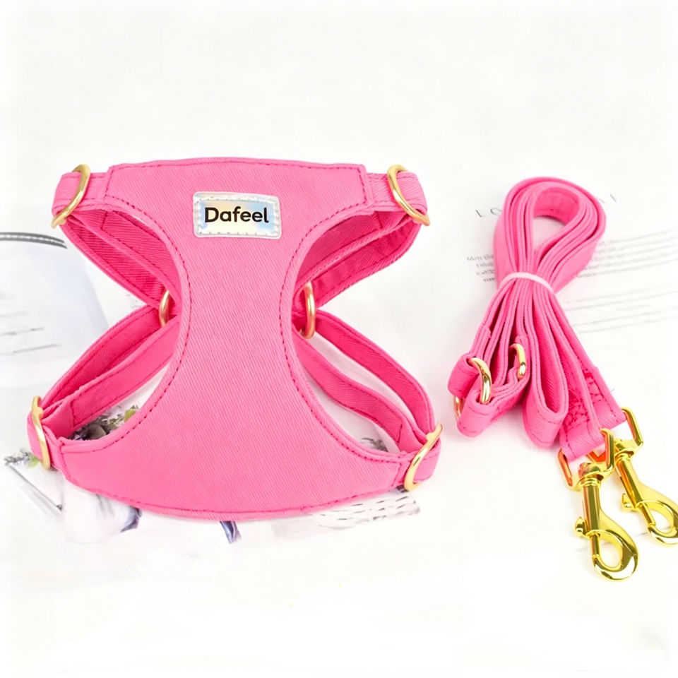 Arnés y Correa para Perro con Diseño de Logotipo Personalizado, Arnés Resistente Ajustable con Hebillas Metálicas para Pasear y Entrenar