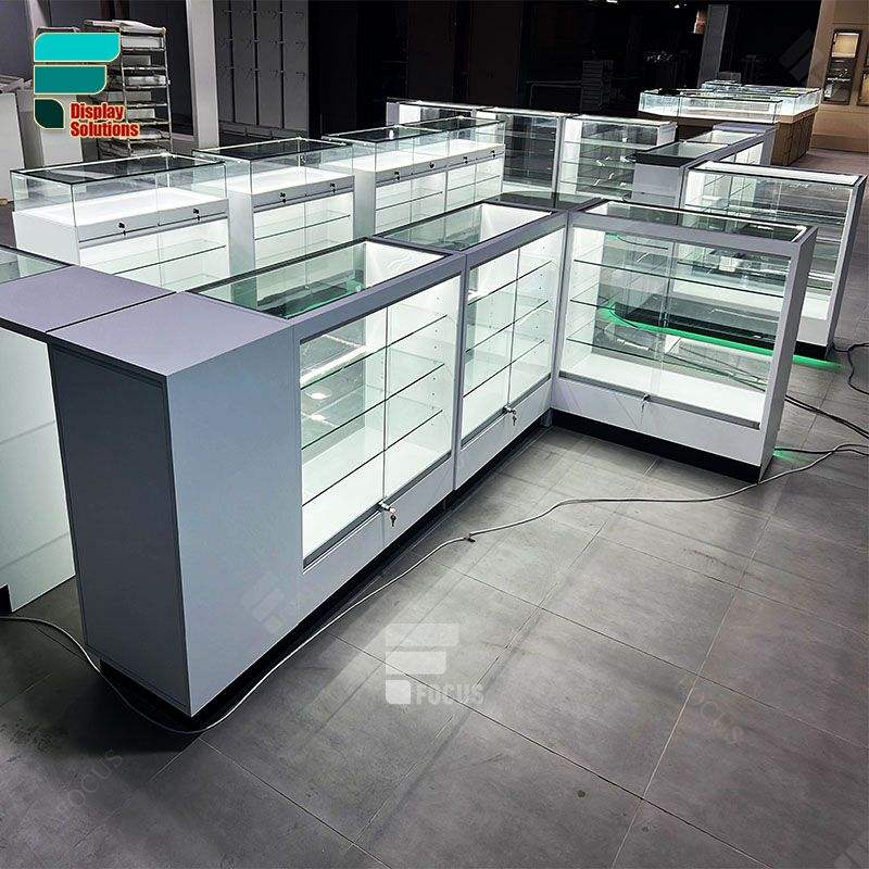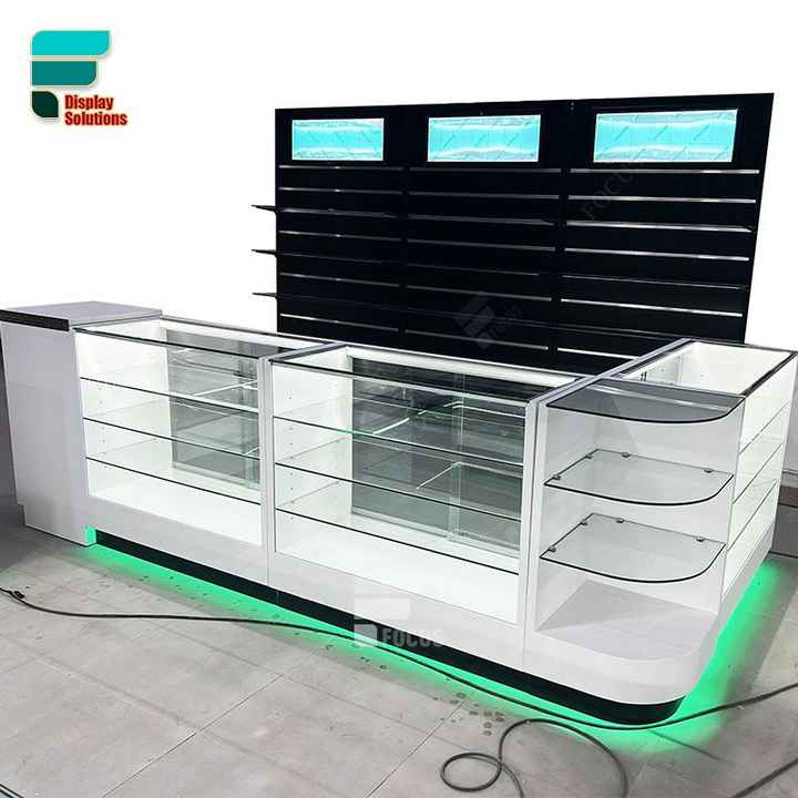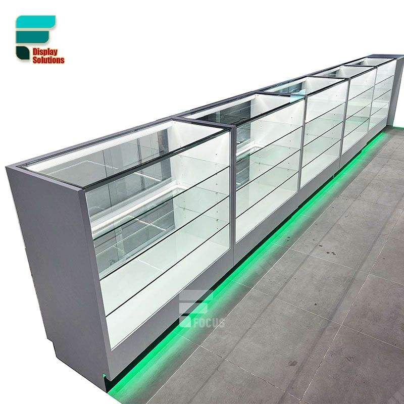 Vitrina de exhibición con logotipo personalizado Estantes de vidrio para tabaco Gabinete Quiosco Tienda de humo Vitrinas para tienda de humo