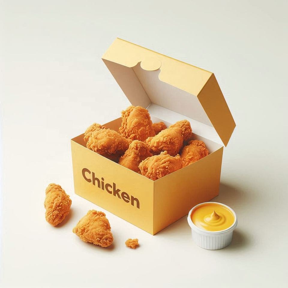 Embalaje Desechable de Calidad Alimentaria, Caja de Pollo Frito con Logotipo Personalizado, Materiales Reciclados, Laminación Mate, Relieve para Sushi