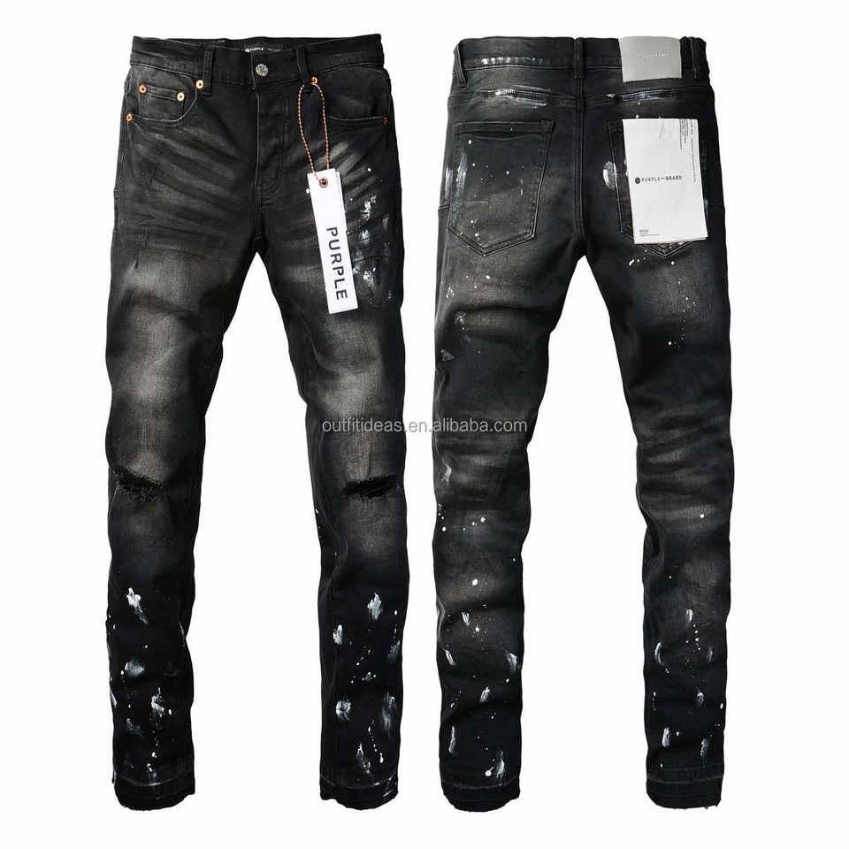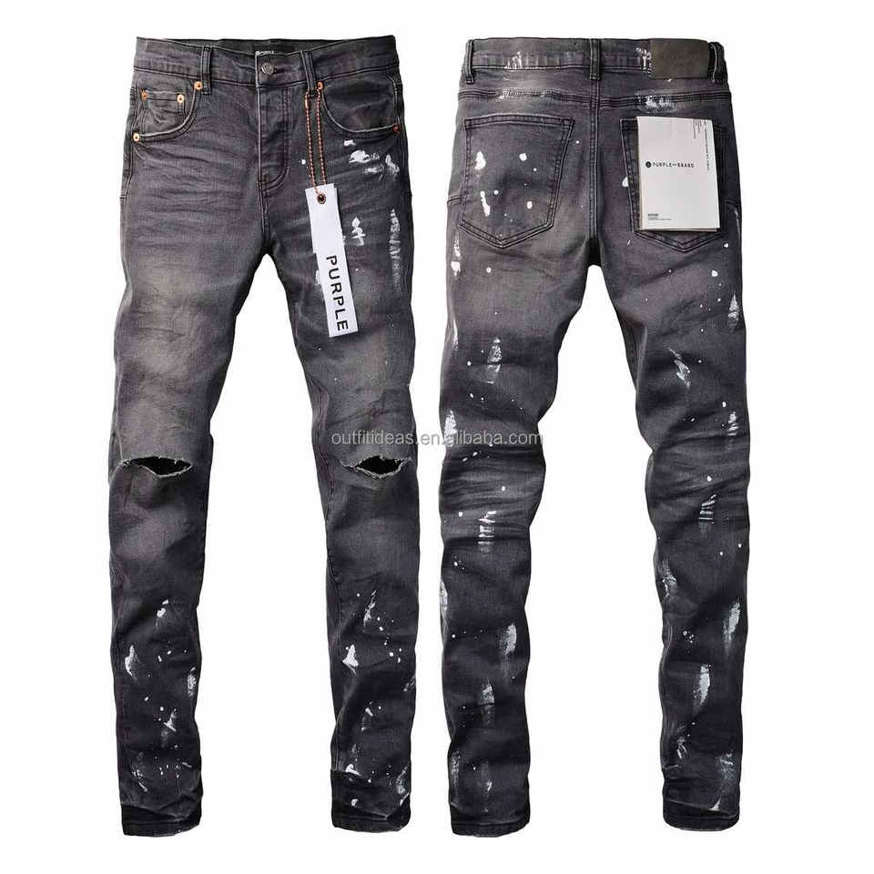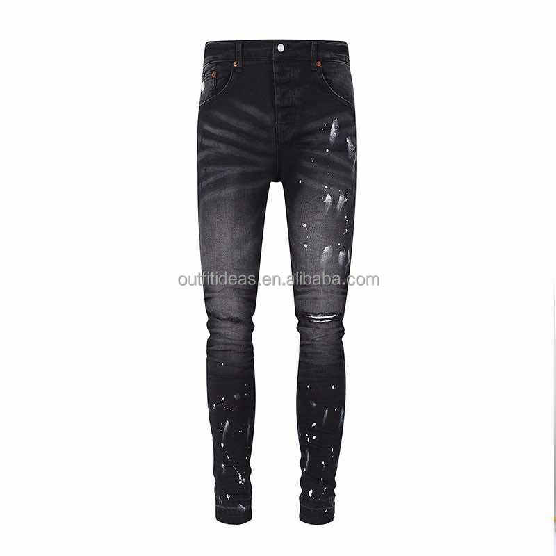 Pantalones vaqueros de hombre ajustados a la rodilla rasgados con diseño desgastado y logotipo personalizado