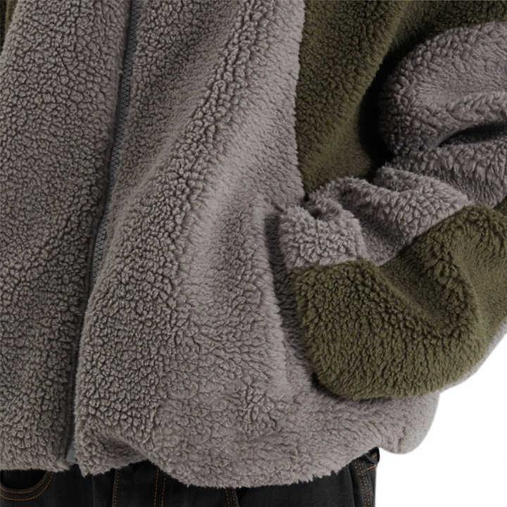 Sudadera con capucha extragrande de forro polar Sherpa, gruesa, afelpada, con cremallera, de doble color y con logo personalizado para hombre